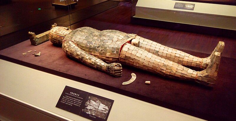 Traje funerário de Liu Sheng, feito com 2.498 peças de jade, unidas por fio de ouro (foto: Hebei Museum)