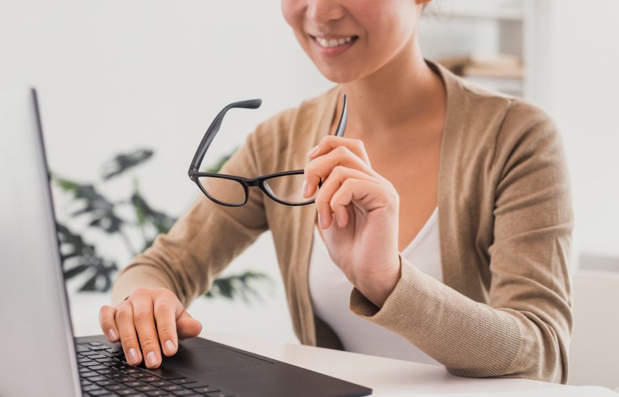 - Reduzir o trabalho de perto: ler ou ficar muito tempo perto das telas pode forçar os olhos. A regra 20-20-20 ajuda: a cada 20 minutos de trabalho, olhe para algo a 6 metros de distância por 20 segundos.