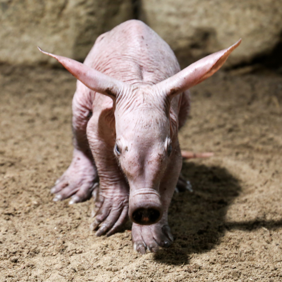 De hábitos noturnos e solitários, o porco-formigueiro usa uma língua de até 25 centímetros para caçar formigas e cupins. A espécie é a única representante da ordem Tubulidentata, o que a torna ainda mais especial para cientistas e zoológicos.