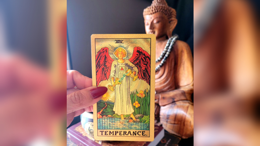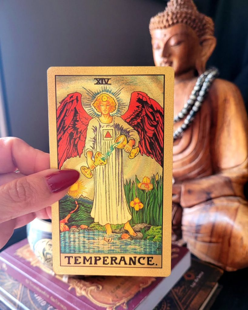 A Temperança chega como um bálsamo para a alma. Ela te lembra que a verdadeira cura acontece quando equilibramos coração e mente, ação e entrega.