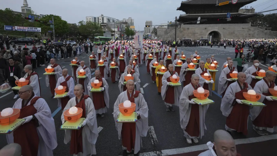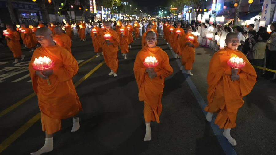 A celebração, que antecede o aniversário de Buda, em 5 de maio, é uma tradição com mais de 1.200 anos de história. Durante o evento, os participantes buscam disseminar a iluminação do fundador do budismo pelo mundo.