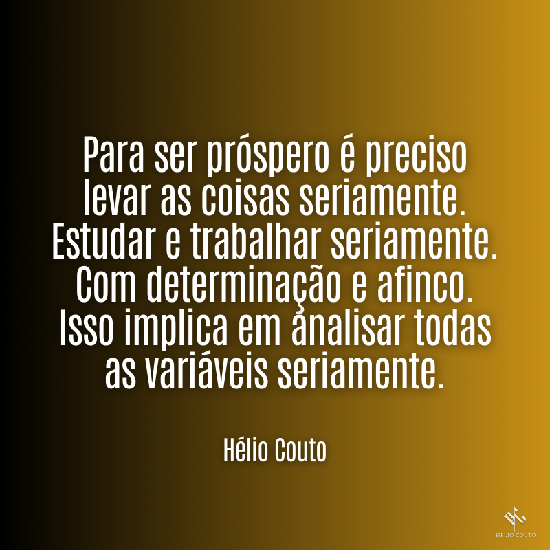 Para ser próspero, é preciso levar as coisas seriamente. Estudar e trabalhar seriamente. Com determinação e afinco. Isso implica em analisar todas as variáveis seriamente.