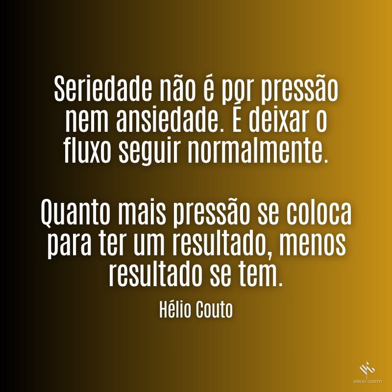 Seriedade não é por pressão nem ansiedade. É deixar o fluxo seguir normalmente. Quanto mais pressão se coloca para ter um resultado, menos resultado se tem. E pressão não é uma coisa externa. É interna. É a atitude de ter que ganhar de qualquer jeito, ter que vender, ter que conseguir, imediatismo, etc.