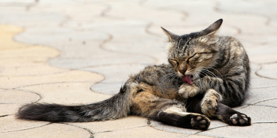 Alguns sinais clássicos são coceiras nos ombros e erupções cutâneas. Um sinal comum de alergias em felinos é “exagerar na higiene”. Gatos não devem arrancar os pelos ao se limparem.