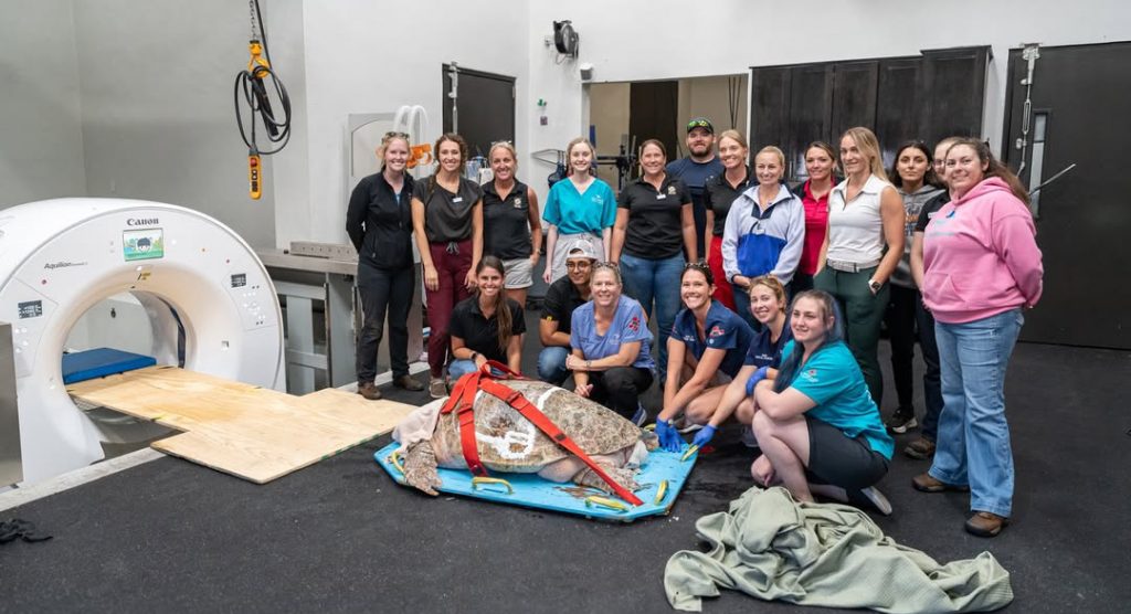 “Esperamos poder levá-la de volta à natureza o mais rápido possível para que ela possa botar aqueles ovos”, diz Heather Barron, diretora científica e veterinária do Centro de Vida Marinha Loggerhead.