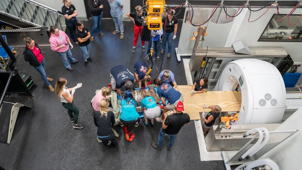 Primeiramente, o animal foi levado a um hospital na tentativa de passar por exames em uma máquina de tomografia para humanos. Mas isso não foi possível devido ao seu tamanho.
