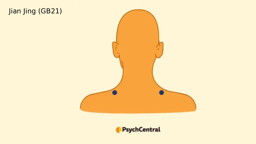 Você pode encontrar o Ponto Poço do Ombro (GB21) pressionando o músculo entre o polegar e o indicador.