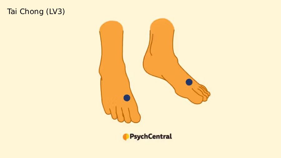 O Ponto de Grande Ascensão (LV3) fica abaixo da junção entre o dedão e o segundo dedo do pé. Você pode encontrá-lo apalpando a área até sentir a cavidade acima do osso.