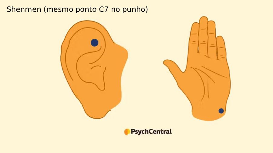 O Ponto Portão Celestial (mesmo ponto C7 no punho) fica na parte superior da concha da orelha. Você o encontrará na região oca da orelha e ele pode ajudar a reduzir a ansiedade, a insônia e o estresse.