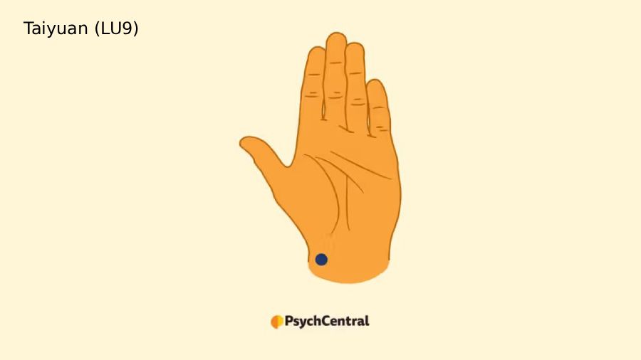 O Ponto Grande Abismo (LU9) fica no pulso, logo após a mão, do lado onde está o polegar.