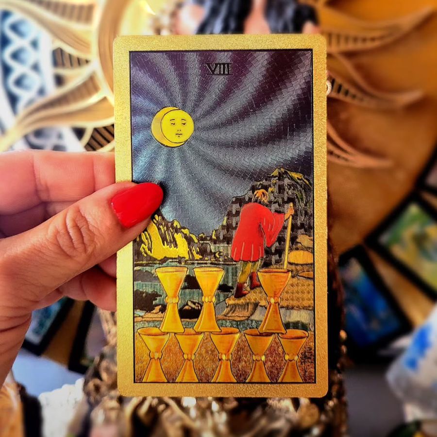 Projetos que drenam sua energia, ambientes que já não reconhecem seu valor ou sonhos que não são mais seus pedem encerramento. O Oito de Copas abre caminho para algo mais verdadeiro e alinhado à sua alma.