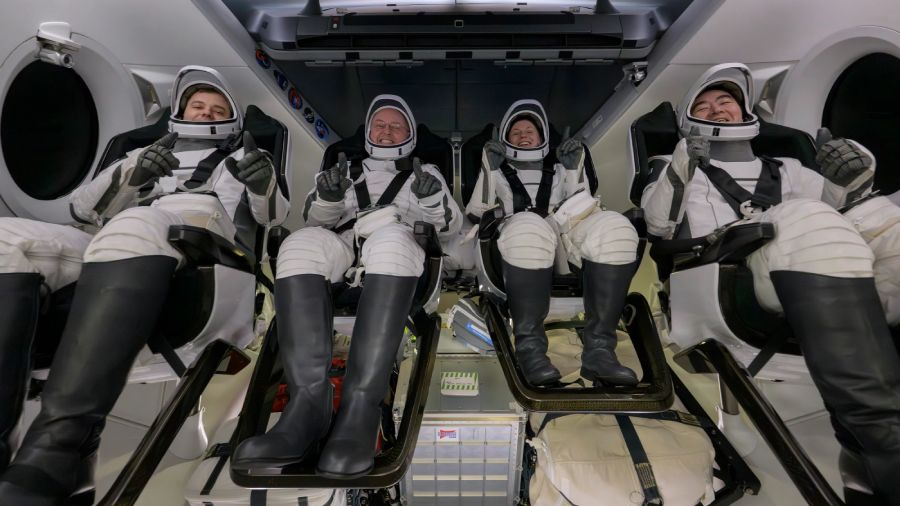 Os astronautas que retornaram são Zena Cardman e Mike Fincke, da agência espacial americana, Kimi Yui, da Agência de Exploração Espacial do Japão (JAXA), e o cosmonauta da Roscosmos, Oleg Platono.